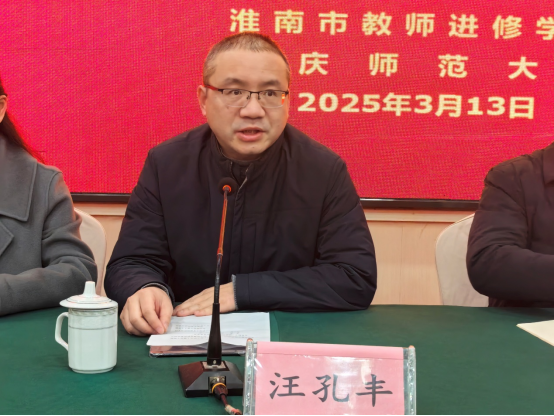 结业仪式由yl7703永利官网副院长周红兵主持。他在开场致辞中简要回顾了本次培训的背景与目标,并介绍了出席活动的领导及嘉宾,包括yl7703永利官网院长汪孔丰、继续教育学院副院长吴义江,淮南市教师进修学校干训科科长赵利利、干训教师李群等。