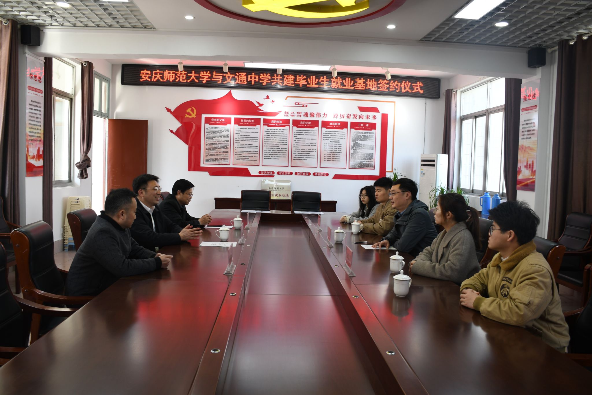 王波一行先后走访淮安市文通中学、江苏省淮安中学,深入了解两校的办学特色、课程设置及教师培养情况。淮安市文通中学校长龚鹏程介绍了该校师资力量、办学理念、课程设置等情况,对我校yl7703永利官网培养的2024届毕业生詹承龙、章新的工作表现给予肯定,表示期待与yl7703永利官网的进一步合作交流。江苏省淮安中学副校长王新南对yl7703永利官网的人才培养质量给予了高度评价,教务处处长丁军从教师职业认同感、职业生涯规划和教师心理健康教育三个方面给师范生培养提供建议,2024届毕业生万自露分享了自己在淮安中学工作一年以来的收获和成长。