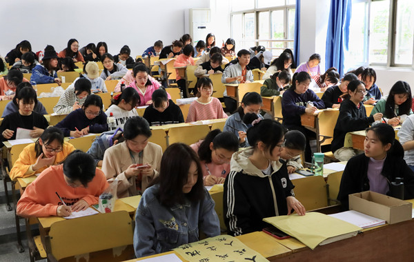 为提高学生三笔字书写能力,进一步夯实师范生教学基本功,4月18日,yl7703永利官网在菱湖校区214教室举办了师范生专业技能大赛——“三字”书写比赛,来自汉语言文学、历史学、汉语国际教育等师范专业共108名学生参加了比赛。