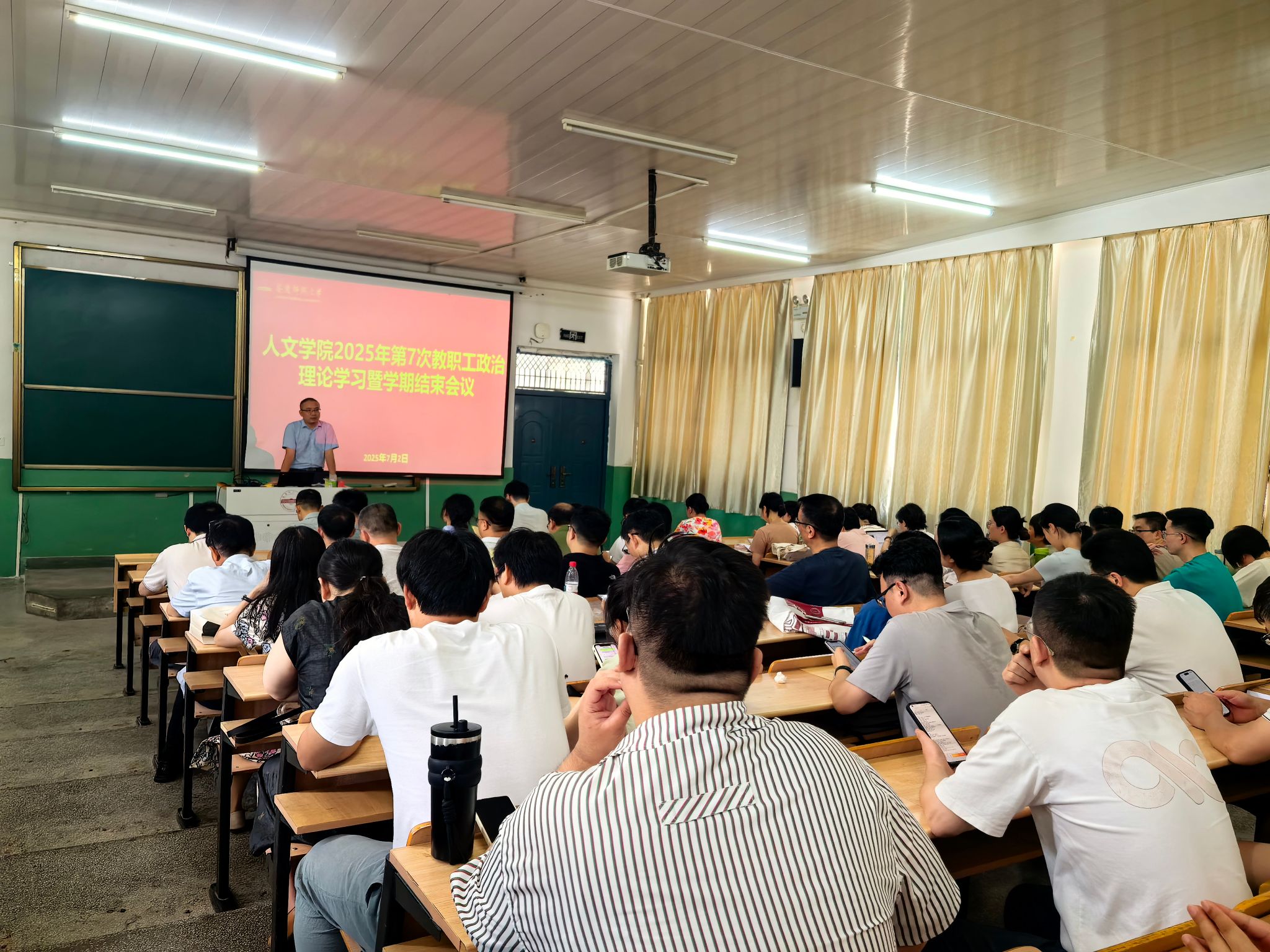 7月2日,yl7703永利官网在菱湖校区理二阶教室召开2025年第7次教职工政治理论学习会暨学期结束会议。会议由院长汪孔丰主持,全体教职工参加会议。