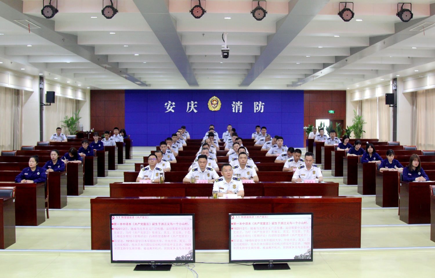 作为双方共建实践基地的重要内容之一,yl7703永利官网组织专业教师队伍,赴安庆消防救援支队开展党史宣讲,践行党史学习的时代使命。在活动之初,校地双方通过细致深入沟通,针对党史学习的基本要求,初步拟定党史宣讲方案。整个宣讲按照中国共产党百年发展历程,同时结合党史学习途径的多样化需求,基本确立了“百年党史的通史+地方党史”讲授体例。内容主要涵盖中国共产党成立以来的百年辉煌历程,结合安徽地方红色革命文化资源(大别山红色精神、渡江精神、小岗精神)以及安庆地方党史的特色内容。在充分酝酿的基础上,宣讲内容精选凝练出“日出东方”“古田会议”“长征力量”“解放战场”“新中国辉煌”“改革开放”“新时代信仰”等10个专题。同时,为了增强党史宣讲实效,在党史内容遴选和宣讲方式方面坚持政治性、科学性、历史性、通俗性等。党史内容精选影响中国共产党发展沿革的重大史实和关键节点,以点带面,提纲挈领地刻画出中国共产党这个百年大党的历史轨迹。此外,党史宣讲在突出党史逻辑线索基础上,穿插生动通俗的党史故事,以通俗易懂的党史细流沁润消防救援人员的心田。