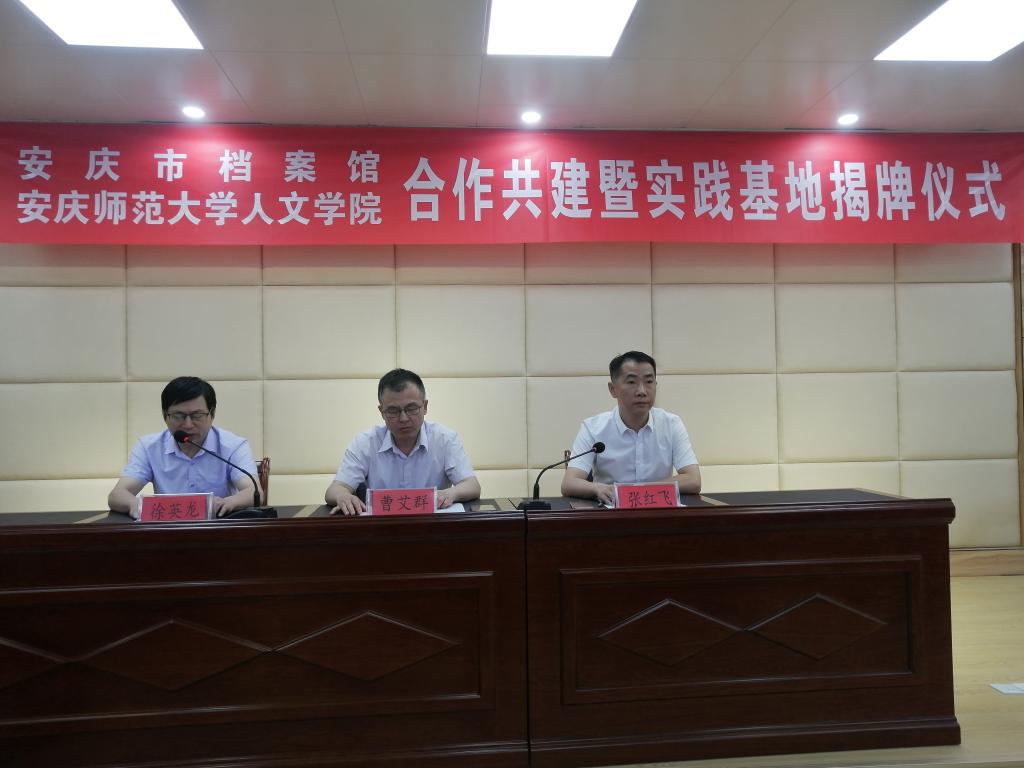 6月9日,yl7703永利官网与安庆市档案馆合作共建暨实践教学基地揭牌仪式在市档案馆大楼会议室举行。yl7703永利官网党委书记张红飞、安庆市档案馆馆长曹艾群等出席揭牌仪式。市教体局副局长、教务处副处长连飞,yl7703永利官网班子成员金仁义、王波、汪孔丰和部分师生代表、市档案馆班子及全体工作人员参加会议。
