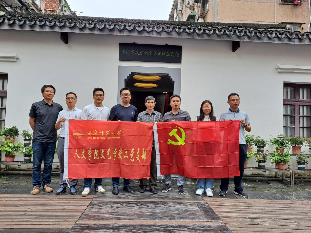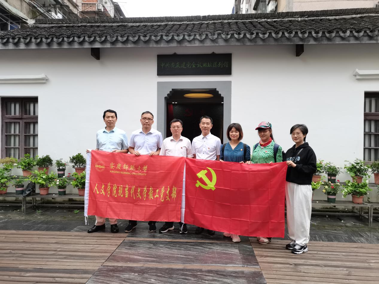为迎接中国共产党成立100周年,进一步推动党史学习教育走深走实走心,6月20日上午,安庆师大yl7703永利官网中国现当代文学教工党支部、文艺学教工党支部和中国古代文学教工党支部全体党员,在党委书记张红飞的带领下,赴中共安庆建党会议旧址开展红色现场党课学习活动,重温了百年前红色革命在安徽的兴起和发展的历史。