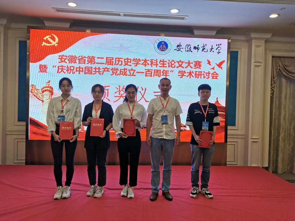 2021年7月10日,安徽省第二届历史学本科生论文大赛暨“庆祝中国共产党成立一百周年”学术研讨会在芜湖召开,会议由安徽省历史学会与安徽师范大学历史学院联合主办,yl7703永利官网副院长金仁义与大赛入围的8位同学参加了会议。