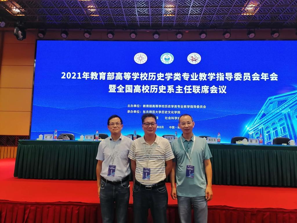7月31日至8月2日,教育部历史学类专业教学指导委员会2021年年会暨全国高校历史系主任联席会议在吉林长春举行。本次会议由教育部高等学校历史学类专业教学指导委员会主办,东北师范大学历史文化学院承办。来自全国高等院校历史系的130多位院长(系主任)和专家参加了本次会议。永利官网副院长金仁义教授、董根明教授、科研秘书沈志富博士一行3人应邀与会。