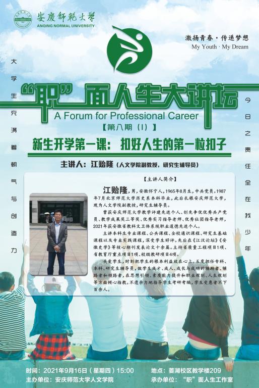 彰显风采,示范引领。为集中展示办学特色和育人成果,学院在敬敷书院两侧摆放展架,yl7703永利官网话剧社、《季节风》杂志、龙睛读书社、“五月花”语言艺术晚会、省级样板支部等一批校园文化品牌建设成果和国家奖学金、学科竞赛获奖情况介绍向新生们全面展现了人文学子争先创优、锐意进取的良好风貌。宣传栏里“职”面人生大讲坛—开学第一课的海报吸引了大家的目光,“扣好人生第一粒扣子”助力新生坚定理想,树立志向。