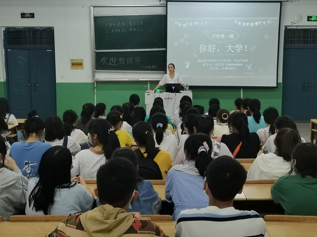 同时,各位辅导员老师也重点强调了校规校纪、人际关系、疫情防控等内容,对新生们提出了自己的期待和要求,也帮助他们展望未来的美好生活“大学的第一次班会对我们来说是有着不一样的意义的,通过这次班会,我对于自己的大学生涯已经有了最基础的认识。”中国语言文学类2021(4)班的盛亮在班会结束后这样说。