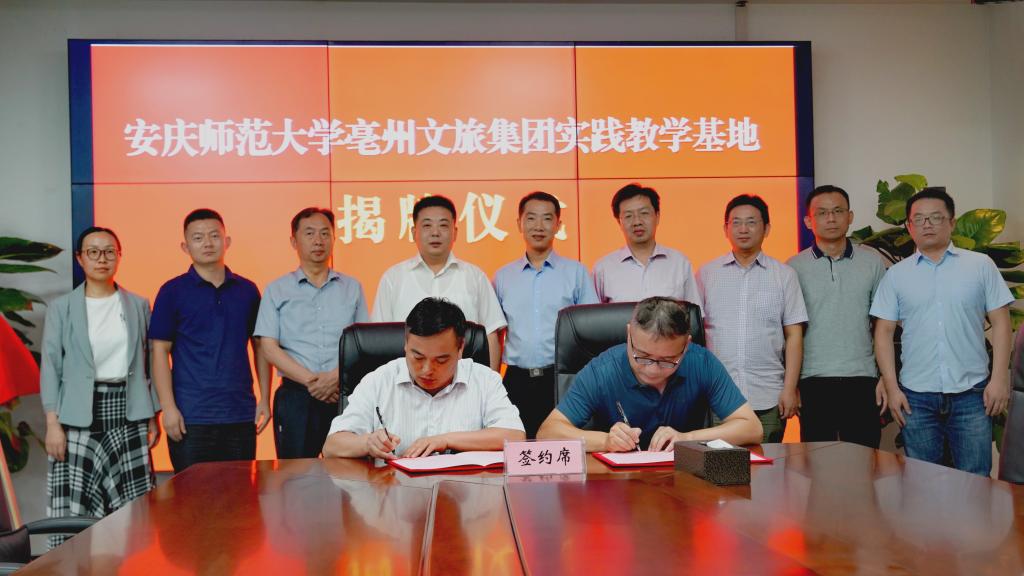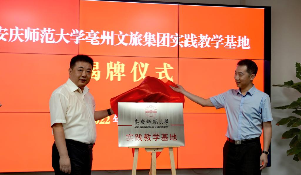 亳州文旅集团党委书记、董事长雅浩海与yl7703永利官网党委书记张红飞共同为“yl7703永利官网实践教学基地”揭牌。根据协议精神,双方将在人才培养、实践教学、历史文化资源挖掘和利用、文旅融合发展等方面开展合作。