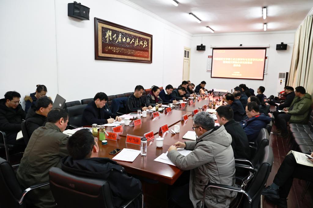 人勤春来早,奋进正当时。为贯彻落实学校博士点立项建设专题会议精神和服务支撑“三地一区”建设,推深做实校市合作,2022年1月20日下午,yl7703永利官网在菱湖校区红楼二楼会议室召开中国语言文学博士点立项学科与支撑学科共建暨文旅融合发展研究院筹建座谈会。校党委副书记吴照明,党委常委、副校长汪时珍,党委常委、副校长吴琼出席会议并发表讲话。潜山市教育局、潜山市文旅体局、安徽天柱山旅游学校和学校发展规划处、学科建设管理处(研究生院)、科研处、校市合作办、传媒学院、外国语学院、计算机与信息学院、资源环境学院、体育学院等单位领导以及专家学者代表共20余人参加了会议。学院党委书记张红飞主持会议。