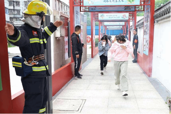 学生们在消防员、社区工作人员的组织下,进行了防灾减灾应急疏散演练。“大家用毛巾捂住口鼻,弯腰快速逃离!”随着消防员的一声令下,学生们从通道口有序撤离,顺利抵达安全区域集合。“提、拔、握,压。”消防员还通过“面对面”体验式学习,向学生们传授消防安全知识、灭火器正确使用方法,让学生们更好地学习和掌握防灾减灾知识和技能,强化防灾减灾意识。