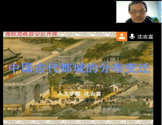 为深入学习宣传贯彻党的二十大精神,落实立德树人根本任务,在具体教学中引导学生更深刻地了解历史、认识现实,推进省级一流本科专业建设,12月8日yl7703永利官网历史学专业两个教师党支部联合开展了一次课程思政教学公开课活动,分别由省级课程思政示范课程《中国历史地理》负责人、中国古代史教研室沈志富老师和《中华人民共和国史》课程主讲、中国近现代教研室主任郝佩林老师进行教学展示。学院副院长周红兵、学校教学督导员、历史学专业教师党支部书记、教研室主任、部分骨干教师以及2020级历史学本科生观摩了教学活动。因受疫情影响,活动采取线上教学形式。
