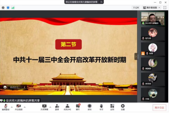 郝佩林老师授课的主题是“中共十一届三中全会开启改革开放新时期”。中共十一届三中全会是党的历史上具有深远意义的伟大转折,也是共和国历史上的一个伟大转折点。重新确立了马克思主义的思想路线、政治路线和组织路线,形成了以邓小平同志为核心的党的中央领导集体,作出把党和国家工作重心转移到社会主义现代化建设上来和实行改革开放的伟大决策,揭开了社会主义改革开放的序幕,开辟了中国特色社会主义道路。以十一届三中全会为起点,中国进入了改革开放和社会主义现代化建设的历史新时期。通过这一节的教学,学生不仅掌握了相应历史知识,而且更深刻地理解了改革开放决策的伟大和开辟中国特色社会主义道路的不易与艰辛,深切地认识和理解了党的伟大,会更加珍惜如今来之不易的幸福生活,树立为社会主义和人民群众奋斗终身的理想。