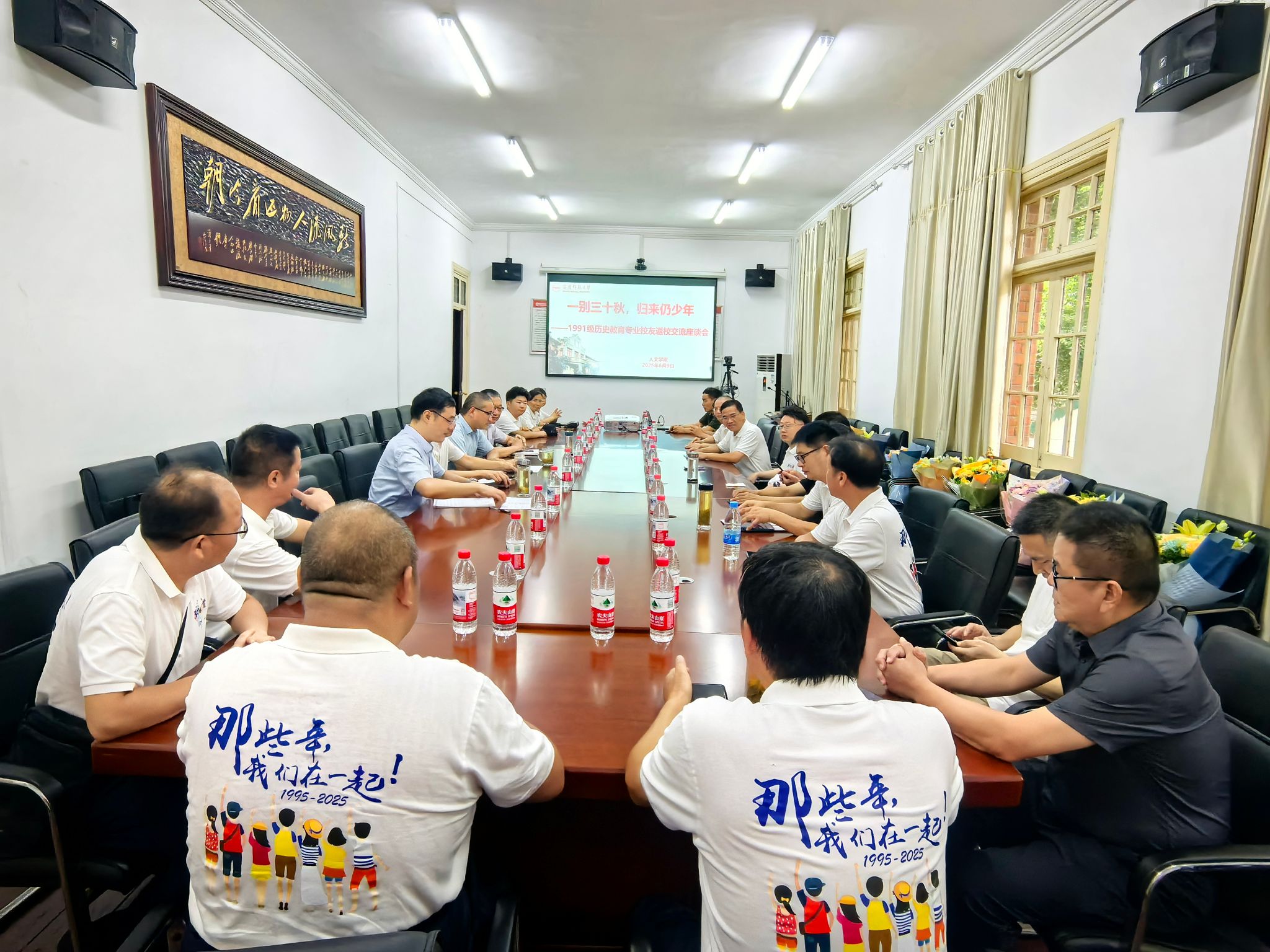 8月9日,1991级历史教育专业校友毕业三十周年返校活动暨交流座谈会在菱湖校区举行。yl7703永利官网院长汪孔丰、党委书记王波、教师代表金仁义教授、辅导员方双六与20余位校友齐聚一堂,忆青春、话友谊、谋发展。会议由王波主持。