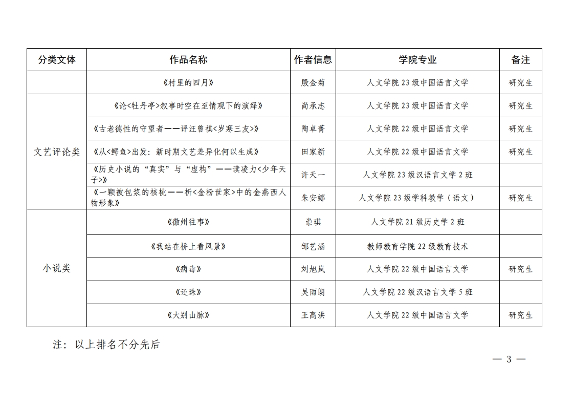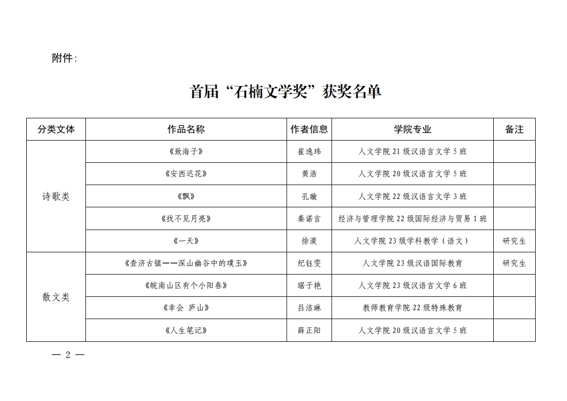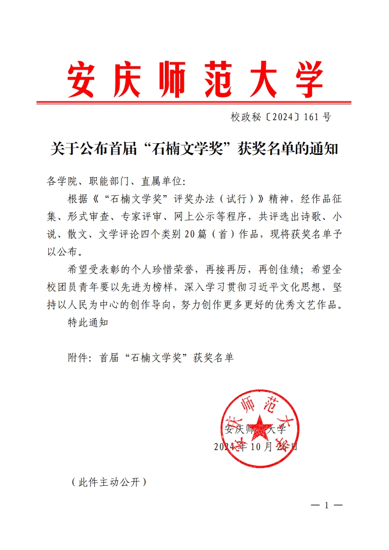 关于公布首届“石楠文学奖”获奖名单的通知