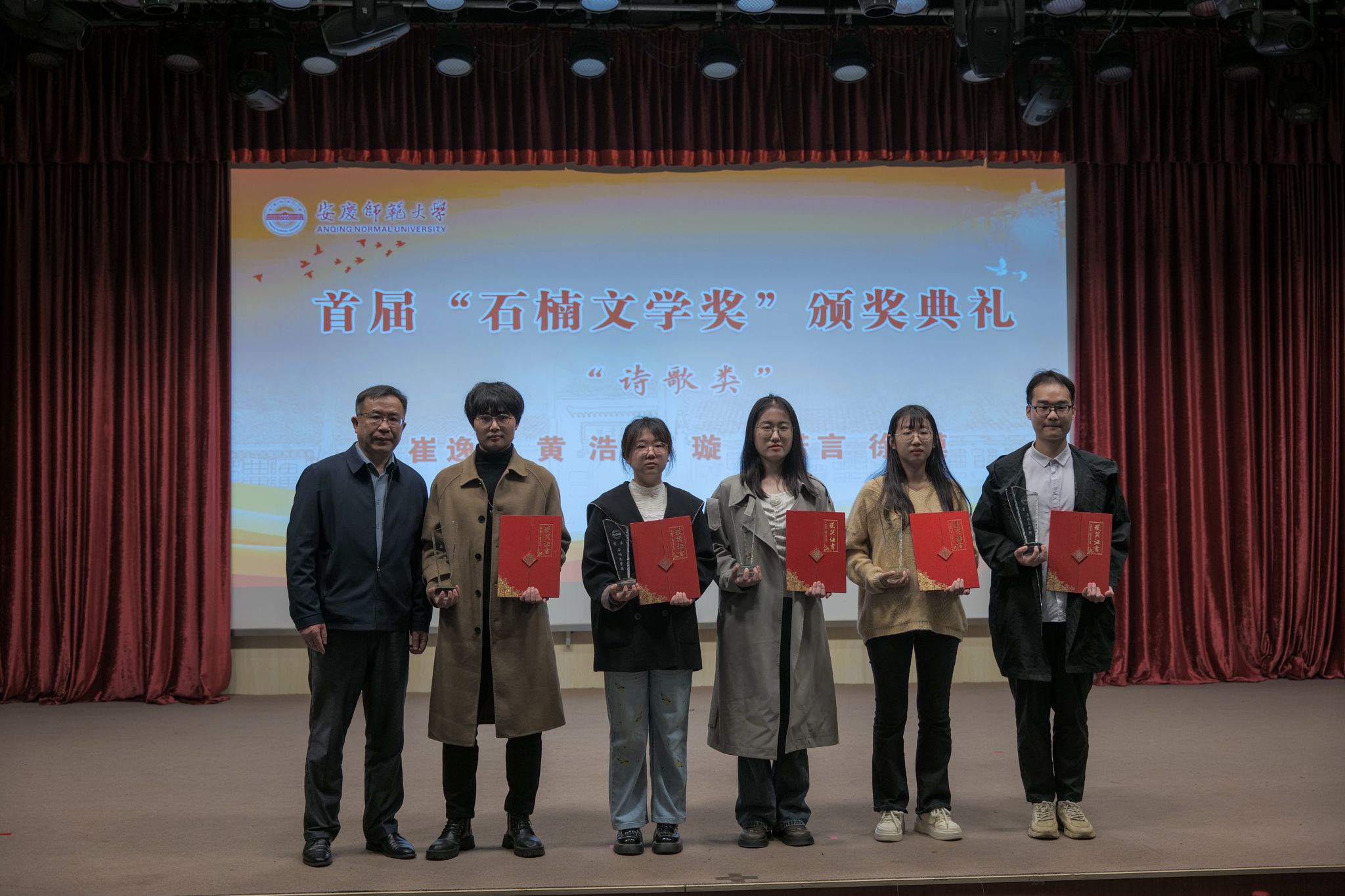 文学奖发起人、著名作家石楠先生,安徽曙光化工集团党委副书记、工会主席杨孝兵,泰邦集团董事长张志华等捐赠人,特邀嘉宾、评委代表、《诗歌月刊》主编何冰凌,安徽省作协副主席江飞,学生处、档案馆、校友总会、yl7703永利官网负责人参与活动,并与首届文学奖获奖学生、yl7703永利官网文典班学生等共同见证颁奖盛典。